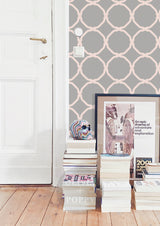 Chic circles on a subtle grey backdrop brings some fun to any space. Play it up!